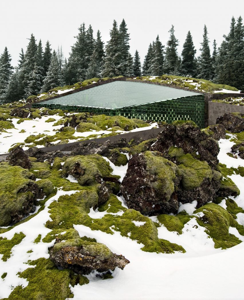 与住宅相连的还有一个完全由玻璃砖建造的温室,用于为岛上居民种植食物,以及一个日式澡堂,澡堂里的浴缸是从岛上的基岩上切下来的。