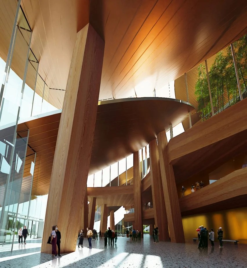 一旦完成,该开发项目的总面积约14.9万平方米,包括剧院、会议中心、休闲中心、体育中心、青年中心和艺术教育中心,所有这些都将被安置在竹叶屋顶下。