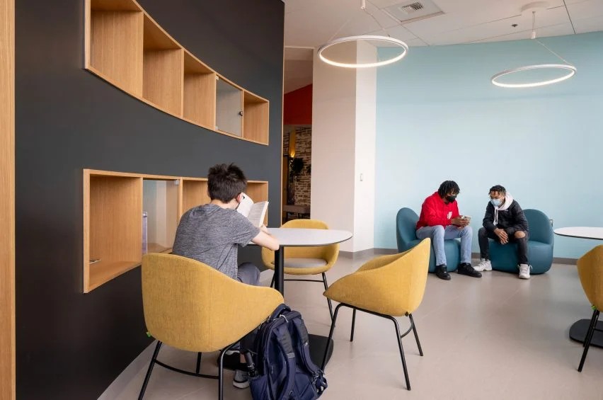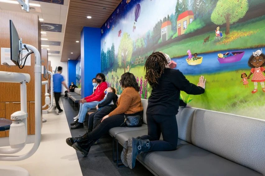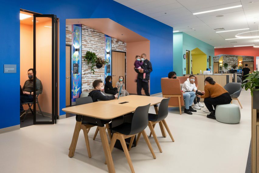 NBBJ 工作室说:“社区成员表达了他们不希望空间有临床感,并强调了‘没有空白墙‘的想法,”