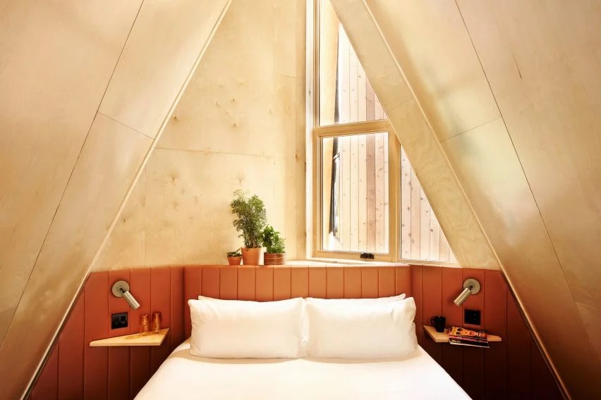 设计团队说:“阁楼床可以通过船上的梯子进入,客厅的沙发可以折叠。客人可以控制自己的空间,从用于自助进入的个人键盘到用于加热、制冷和照明的简单自动控制。”