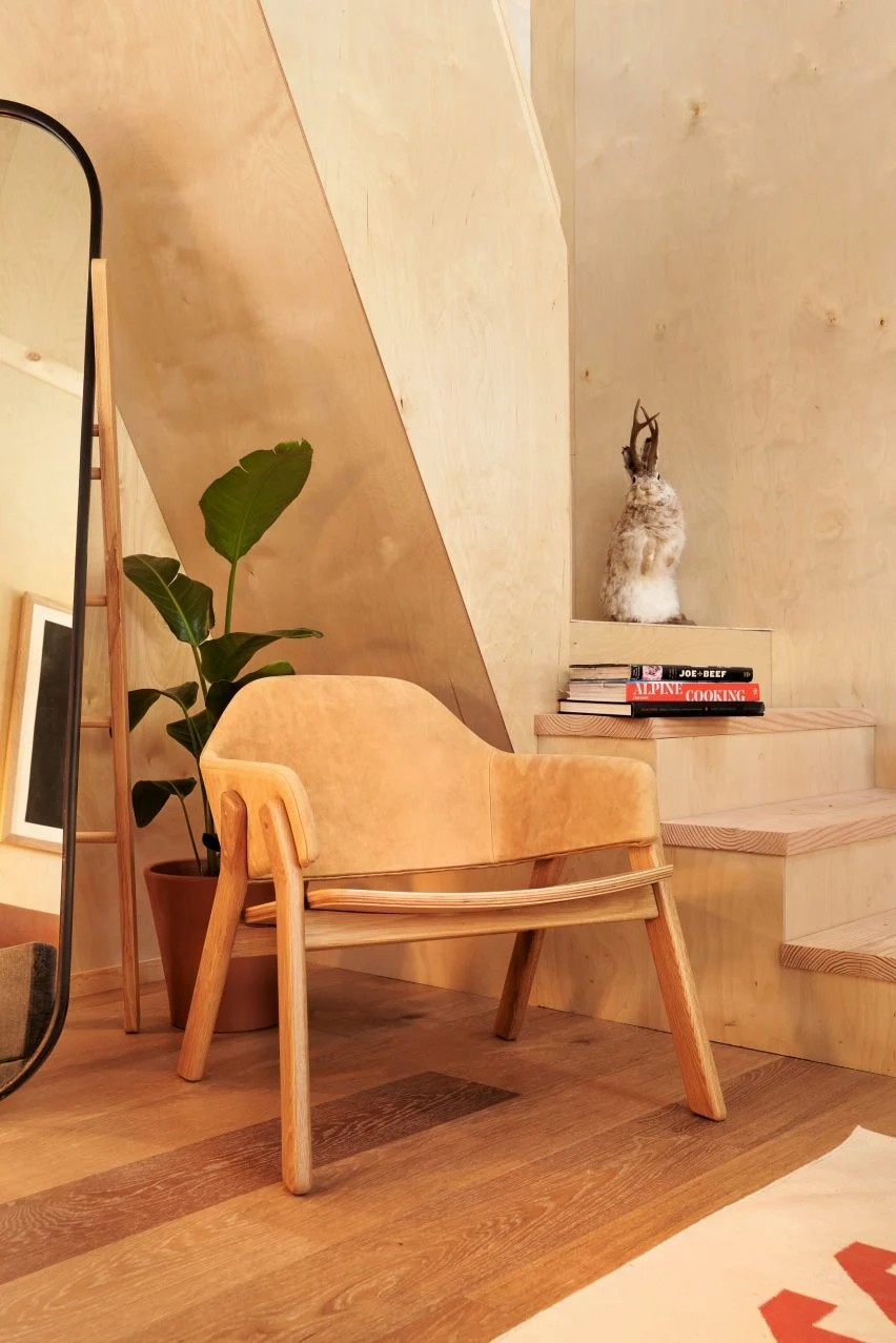 Skylab工作室表示:“触觉定制饰面——包括防风砖、定制木制品、彩色玻璃、皮革内饰,甚至野口风格的照明——强调工艺,而雪松等自然元素则注入了温暖感。”