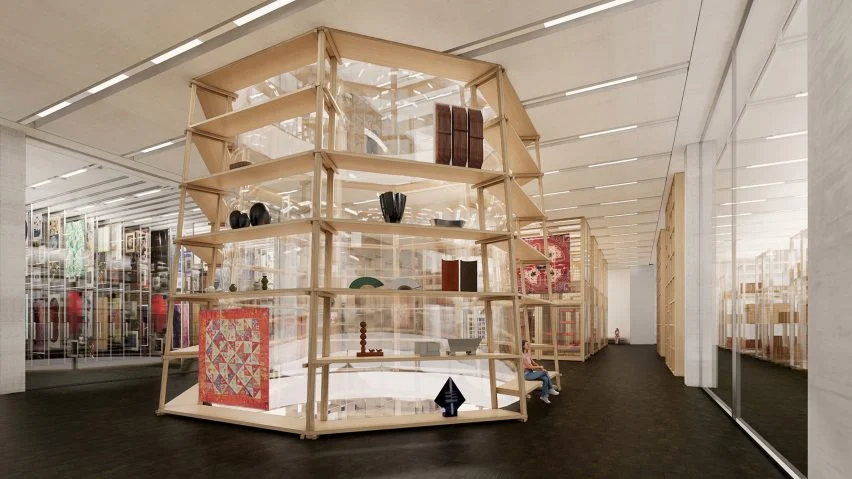 内部的一个焦点将是一个玻璃锥形中庭,从一楼一直延伸到第六层,并被展示柜包裹,让游客可以一窥档案馆。
