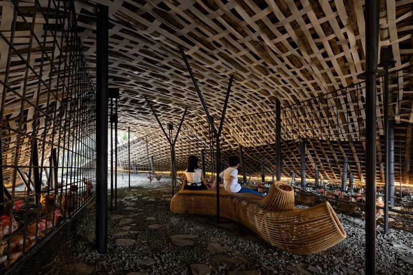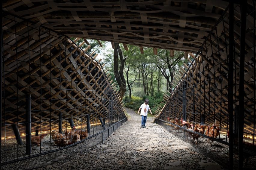 它由一个竹框架建造而成,在RAD+ar工作室描述为“洞穴般的隧道”的人行道两侧有两个养鸡场。