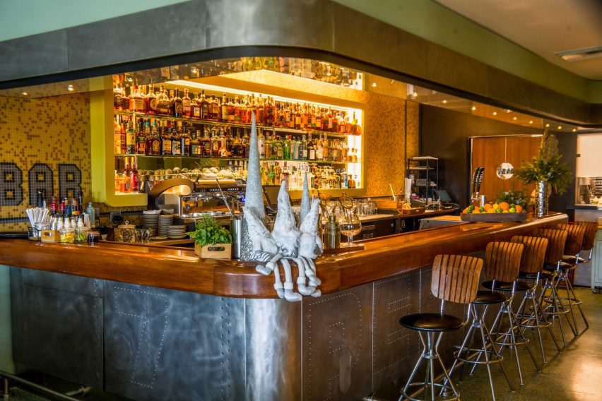 酒吧区进行了扩建,呈现出现代风格,木制家具和铆接金属板包裹着酒吧本身。