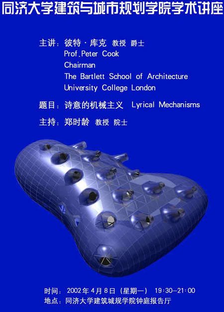 这是尊敬的Cook教授第一次中国行,讲座将包括三个方面:他近期的工作、Archigram的工作及Bartlett School的情况。