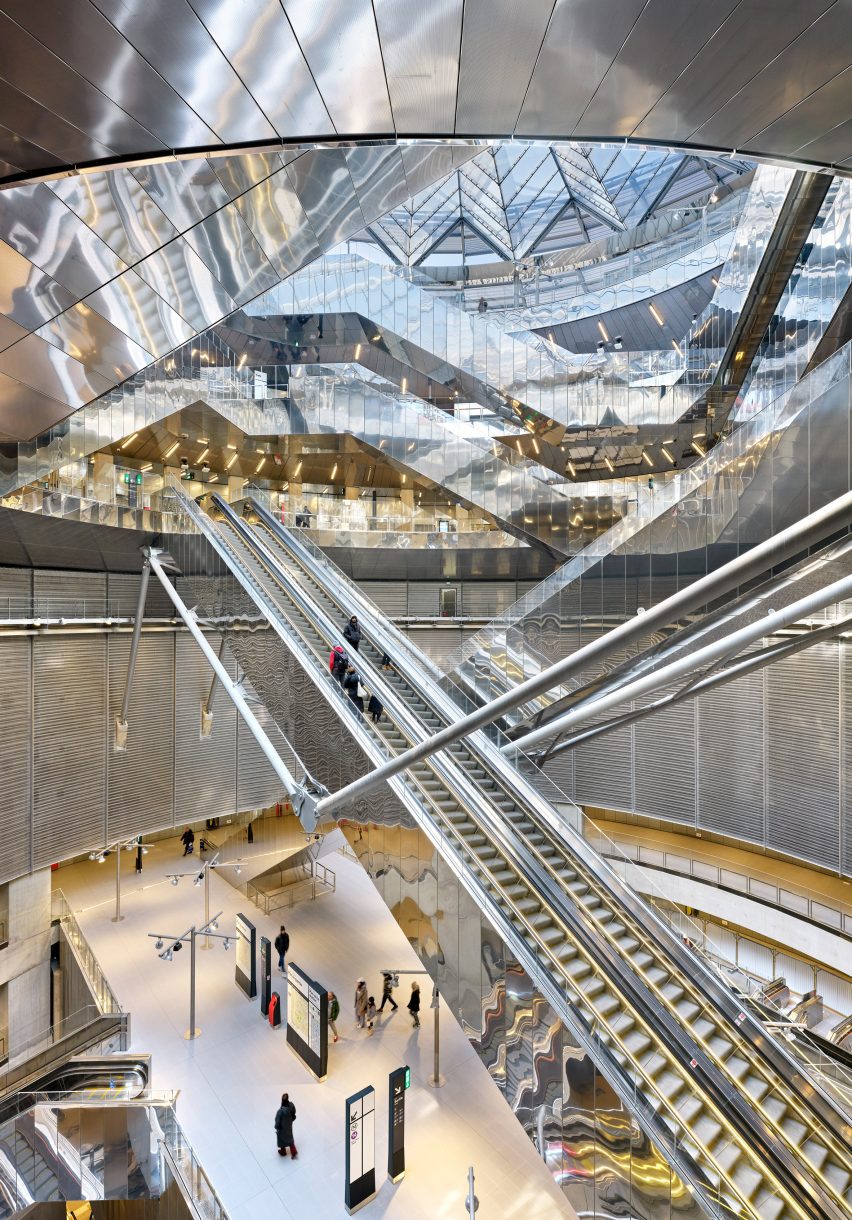 项目支持者法国大工程公司选择了著名的建筑师来设计该网络上的九个“象征性”车站,包括去年在巴黎北部完工的隈研吾(Kengo Kuma)的圣丹尼斯普雷耶车站(Saint-Denis Pleyel Station)。