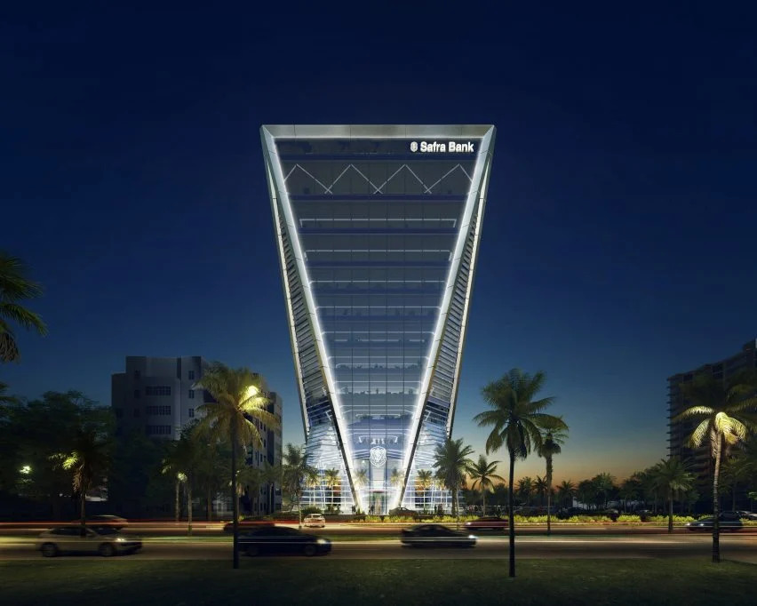 福斯特工作室说:“这座建筑引人注目的形式是由两个相互连接的棱柱组成的。这种形式传达了一种平衡感,并在塔楼的底部和顶部创造了壮观的空间,银行将在那里接待客户。”