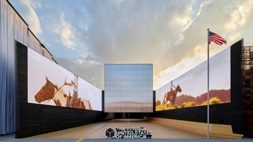 美国特拉汉工作室(Trahan Architects)为2025年大阪世博会(Expo Osaka 2025)设计了美国馆,这是一个结合了日本和美国影响的门户式结构,以一个半透明的立方体为中心。