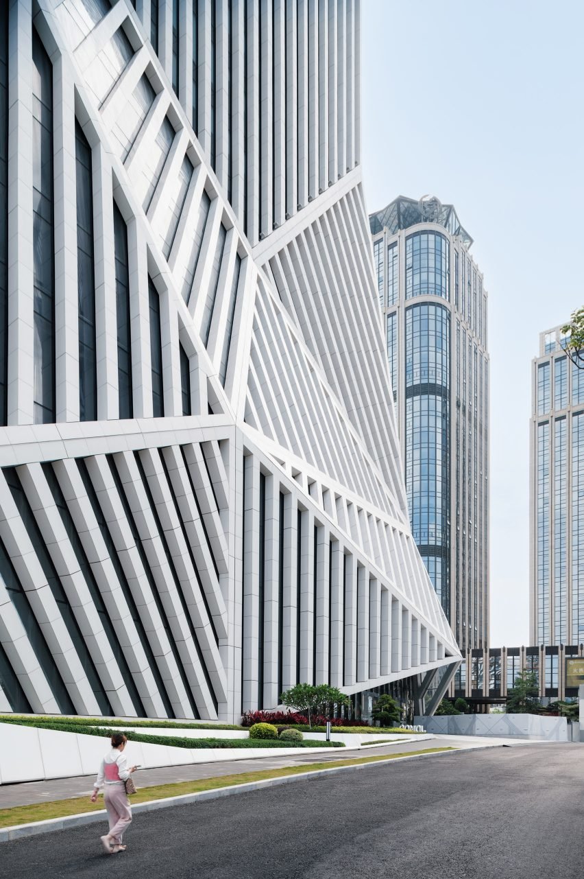 OMA工作室的设计借鉴了福建省的岩石和山区地形,将平台拉起,在立面上形成了一系列角度。