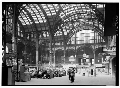 老的“宾州车站”是“麦金,米德-怀特建筑事务所”(McKim Mead & White)设计艺术的珍品,直到1964年还存在。拆毁这幢建筑物,是美国建筑史上最大的犯罪。取代它的是这个城市最没有人性的场所之一:一个拥挤的通道和等候区,埋在一个大得不顺眼的鼓状花园的下面。