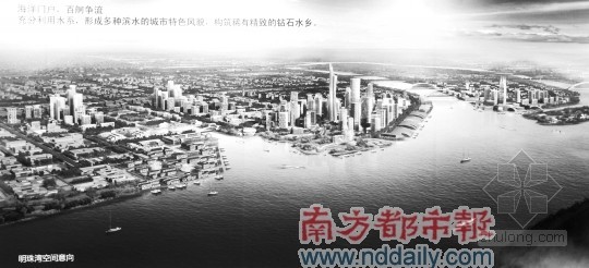 规划方案称,明珠湾区寓意日月照珠江,通过大尺度的江河、山水构筑核心湾区水乡风貌。通过山水相连,五水汇湾,三江六岸、南海之门的元素,充分利用水系,形成多种滨水的城市特色风貌,构筑稀有精致的钻石水乡。