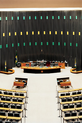 7、巴西国会建筑中的下议院会议厅。尼迈耶在巴西设计的160幢建筑物中,国会大厦是他最喜欢的。