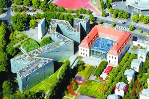 柏林犹太博物馆从空中鸟瞰是一系列长方体建筑连贯而成的曲折锯齿形线条,凸起尖尖的锐角,幅宽被强制压缩,像扭曲的生命充满痛苦和悲伤。中间一组空白地带排成的直线,将曲线一分为二,象征欧洲犹太人苦难史上难以磨灭的空白。博物馆内外充满破碎和不规则的元素,堆积成伤痕累累的民族悲情,诉说两千年来犹太人和德国人难以厘清的因果关系。