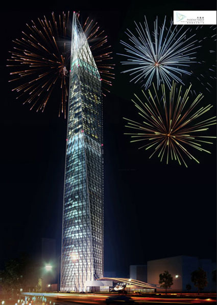 创意:凤凰的隐喻体现在从地面冲天而起的无尽力量,同时亦体现于镶嵌式的精致表皮,具羽毛质感退入式的南北立面,不仅创造出节能表皮的特质,而且彰显了一个独特、有细节,标志性的建筑形象。作为一个崭新的国际性中心,海南凤凰塔体现了一种发展中不断创新、进取的精神力量。魅力、活力和能量,通过细致精心的建筑设计得到完美的体现。景观设计及其形式象征了塔楼对周边能量的聚集,同时塔楼体量的标志性旋转,透过海口的骄阳,创造出栩栩如生的建筑形象。设计同时体现了当地黎族织锦元素。