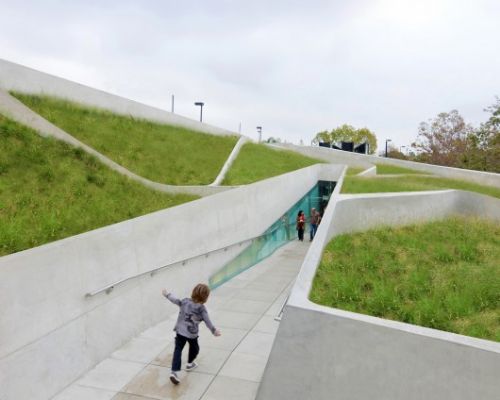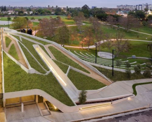 博物馆位于泛太平洋公园内,如此大体量的建筑与公园现有的景观融合,并在空间分布上达到了一个平衡。