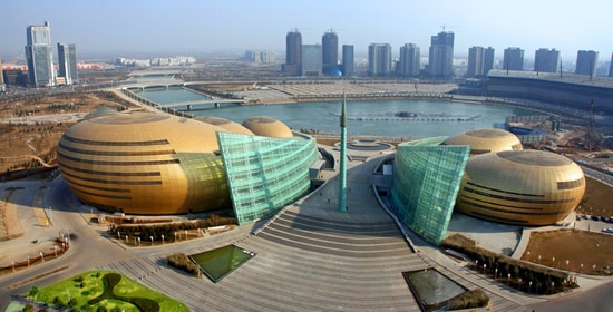 6、河南艺术中心大剧院。河南艺术中心(英文:Henan Art Center)位于河南省郑州市郑东新区CBD核心区。由加拿大国际著名设计大师卡洛斯奥特设计。灵感来源于河南出土文物乐器陶埙、石排箫和贾湖骨笛的造型,艺术墙的设计源自黄河波涛翻卷的浪花造型。