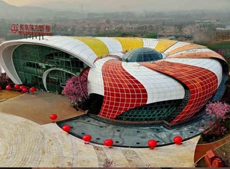 9、青岛东方影都“鹦鹉螺”展示中心。青岛影视产业园被称为全球投资规模最大的影视产业项目,项目占地376万平方米,总投资500亿元。这个占地4100平方米的建筑没用一点水泥沙石,全部都是金属结构。