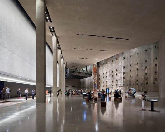 这一设计方案占地3万多平方米,将世贸双子大楼留下的大坑建成6米深、各占地4000平方米的方形水池,其四周的人工瀑布最终汇入池中央的深渊。用四周的水声遮蔽闹市区的喧嚣,而瀑布则能过滤外部强烈的光线。馆长丹尼尔斯认为,这两个巨大的瀑布水池将成为整个纪念馆最为引人注目的标志性景观。馆长丹尼尔斯说:“我想整个纪念馆给人的感觉就是两个建在世贸遗址上的水池与其他建筑融为一体,水池中有美国最大的两个人工瀑布,这里是双子大楼曾经伫立的地方。与此同时,近三千名遇难者的姓名刻于水池周边的墙体,在绿树环抱中和流水声的映衬下,这里会显得非常平和。人们来到这里,就好像当年‘9·11’事件发生后人们聚集到这里一样。