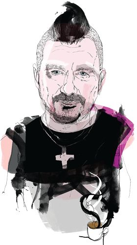 我问,是否他的外貌得到了喜欢某种特色的时尚界的认可。毕竟,雇用他们这类人的设计师和经理,同时又是艺术内行的人是相当普遍的。但像彼得-马里诺这种从头到脚都是皮革的人是没有的。马里诺耸耸肩说:“我不知道。我不为别人而穿皮革,我没有时间来改变服装。”他说,他做了一个项目又一个项目;走了一个国家又一个国家。但我觉他有点不坦率。在那样一个强调形象的产业,马里诺不会无视服装所起的作用。