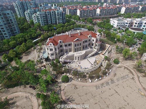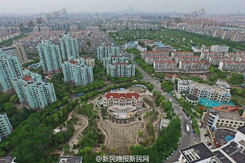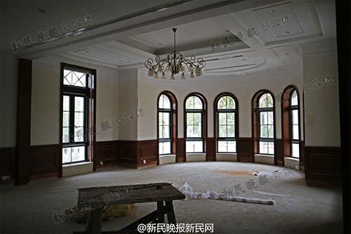 近日,家住浦东三林的居民反映,环林东路银环路一处公共绿地里惊现豪华大宅。记者现场探访,发现“豪宅”不仅外观考究,内部更配有七层水晶吊灯、旋转楼梯、豪华浴缸等奢华装璜。