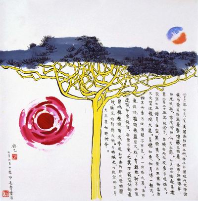 记得冯至先生有篇散文,说有时偶在深山古寺中见到一朵灼灼的红花,虽只一瞥,但永不忘记,它成了你灵魂深处的一个部分(大意)。我看了舒乙的画,可说和冯至先生同感。鲁迅先生总结自己写《阿Q正传》的方法(我看也是中国特色的创作方法),共十六个字,叫做“静观默察,烂熟于心;凝神结想,一挥而就”。我以为这也正是舒乙先生的方法,这才是从事艺术的“心法”,这也是舒乙先生的画给予我的启迪。