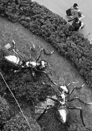 美术馆外的蜘蛛体形比人都大 (沈家善 摄)
