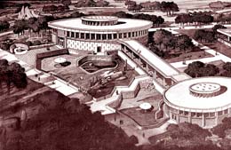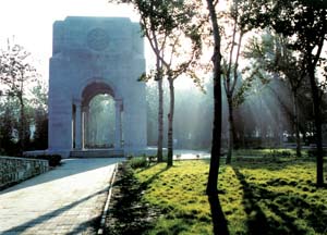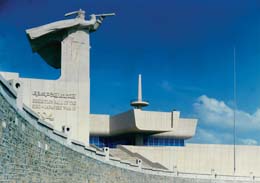赋予象征意义和文化内涵主要是针对几个纪念性建筑而言的。和园林建筑一样,这类建筑的艺术性要求也是很高的,但所要表达的情趣却截然不同,园林建筑一般所体现的是它的抒情性,要具有诗情画意。纪念性建筑则应根据其不同性质而突显其主题和个性,或雄伟,或庄严,或典雅,并使之具有鲜明的性格特征和丰富的文化内涵。