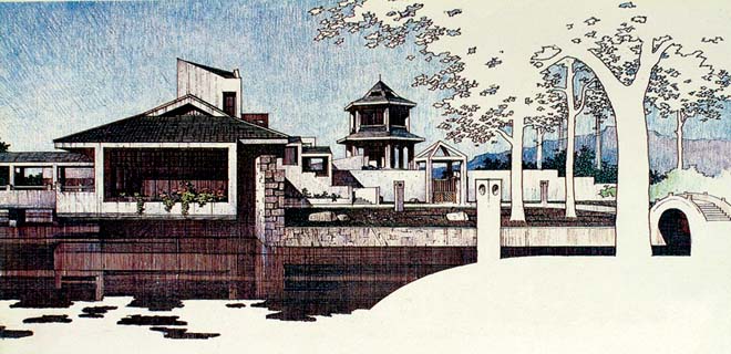 做好这一点,每一个中国建筑师责无旁贷,然而实践起来却并非易事。由于时代在发展,人们的审美情趣也在随之而变化,但是,全然摒弃传统建筑文化而一味抄袭、模仿西方建筑形式,我似乎又于心不甘。于是在条件允许的情况下,我还是试图使两者能够相互融合。这些年来,我接受了若干园林规划设计的项目,由于它的艺术性要求较高,功能限制又不苛刻,我便试图在这类建筑中探索时代性和民族性的融合。由于项目所处的地域条件或地理位置各不相同,我力图区别对待,以期恰如其分地体现出各自的地域特色。