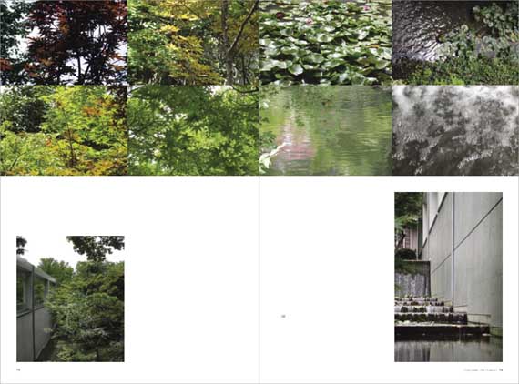 但是,占整书超过2/3的九座建筑实地图片却是由马卫东用一台普通的数码相机摄制而成,与一般建筑杂志上美轮美奂的摄影形成很大的区别。当初我有点不解,其实这也是马先生的苦心一片:“这是用极其普通的数码相机,没有任何的镜头处理,沿着参观路线展示出来,尤如你自己亲眼所见……”正是这个普通但又极其富有建筑师眼光的图像角度呈现,是一种朴素又充满自信的诚意吧。对于非建筑类读者来说,这多了一份亲切感;而对于建筑专业读者来说,这应该是另一种更贴近本原的观察方式,更何况,书内还附有许多珍贵的安藤设计手稿。