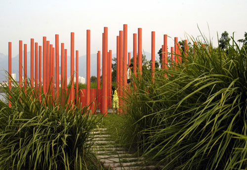 “飘浮的花园”是一个关于浙江台州黄岩永宁江生态恢复与重建的案例。设计者本着“与洪水为友”的态度和设计理念,把昔日一个以防洪为单一功能的水泥硬化河道,通过大量应用乡土物种进行河堤的防护建设,在滨江地带形成了多样化的生境系统,使之成为充满生机的现代生态与文化休憩地——永宁公园;该项目将城市雨洪管理、乡土生物保护、居民的日常休憩活动有机地结合起来,使城市土地利用集约化,用最经济的途径,创造出健康优美的人居环境。今年3月,该项目已被中国建设部授予“中国人居环境范例奖”。ASLA评奖委员会对该建成项目给予很高的赞许,评语是:“巧妙的建筑设计,精到的自然植被配置,创造出感性的体验空间,好作品!”