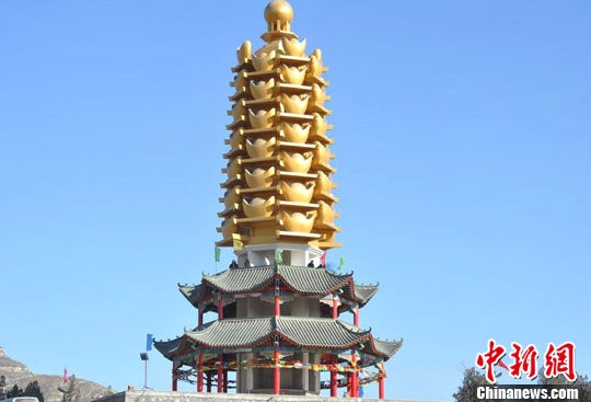 2月7日,河北鹿泉灵山景区现身“财富塔”。塔高30.7米,呈8角形态,四周为元宝型雕塑,塔内有八大财神像,圆锥体塔身由块块金光灿烂的元宝缀接成振翅远航的风帆状,喻示各路财神庇佑十方吉祥之意。目前正申报世界第一高财富塔吉尼斯世界纪录。(2月9日中新网)