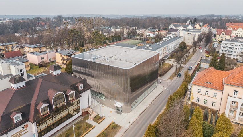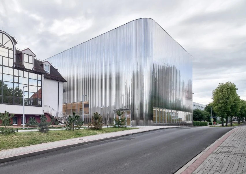 这座位于波兰南部的音乐厅周围是闪闪发光的钢铁立面,由当地SLAS Architekci工作室为一所州立音乐学校设计。