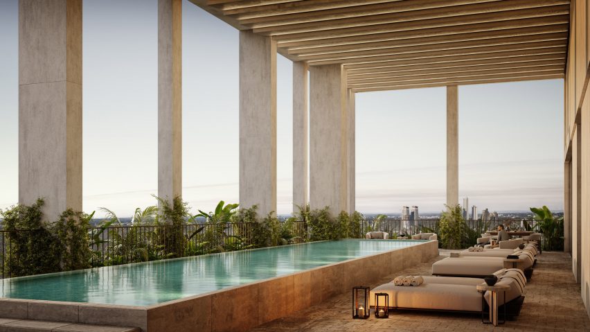 该塔楼将包含一到三间卧室的公寓和设施空间,还包括室外游泳池、休闲区和共享办公空间。