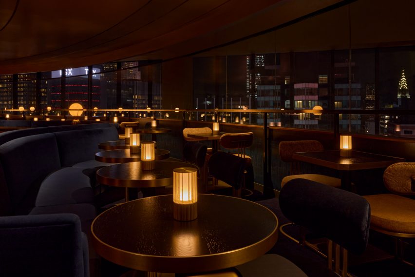 纽约工作室罗克韦尔集团(Rockwell Group)对这座城市唯一的旋转餐厅进行了重新设计,对内部进行了翻新,并在风格上参考了下面的百老汇剧院区。
