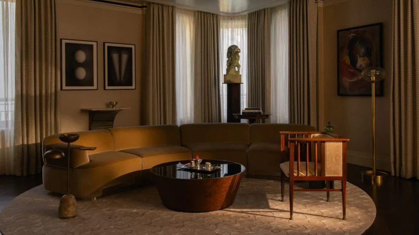 这套170平方米的公寓位于法国建筑师蒂埃里-德斯庞特(Thierry Despont)设计的装饰艺术风格的寇松(60 Curzon) 大楼内,内部充满了塔贾纳-冯斯坦(Von Stein)设计的家具。