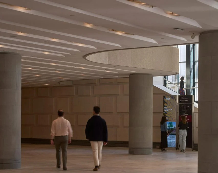 她说:“我们把顶层的塞茵那石灰石一直带到了一楼,这感觉就像是在向游客传达有什么东西可以让建筑保持直立和站立。”