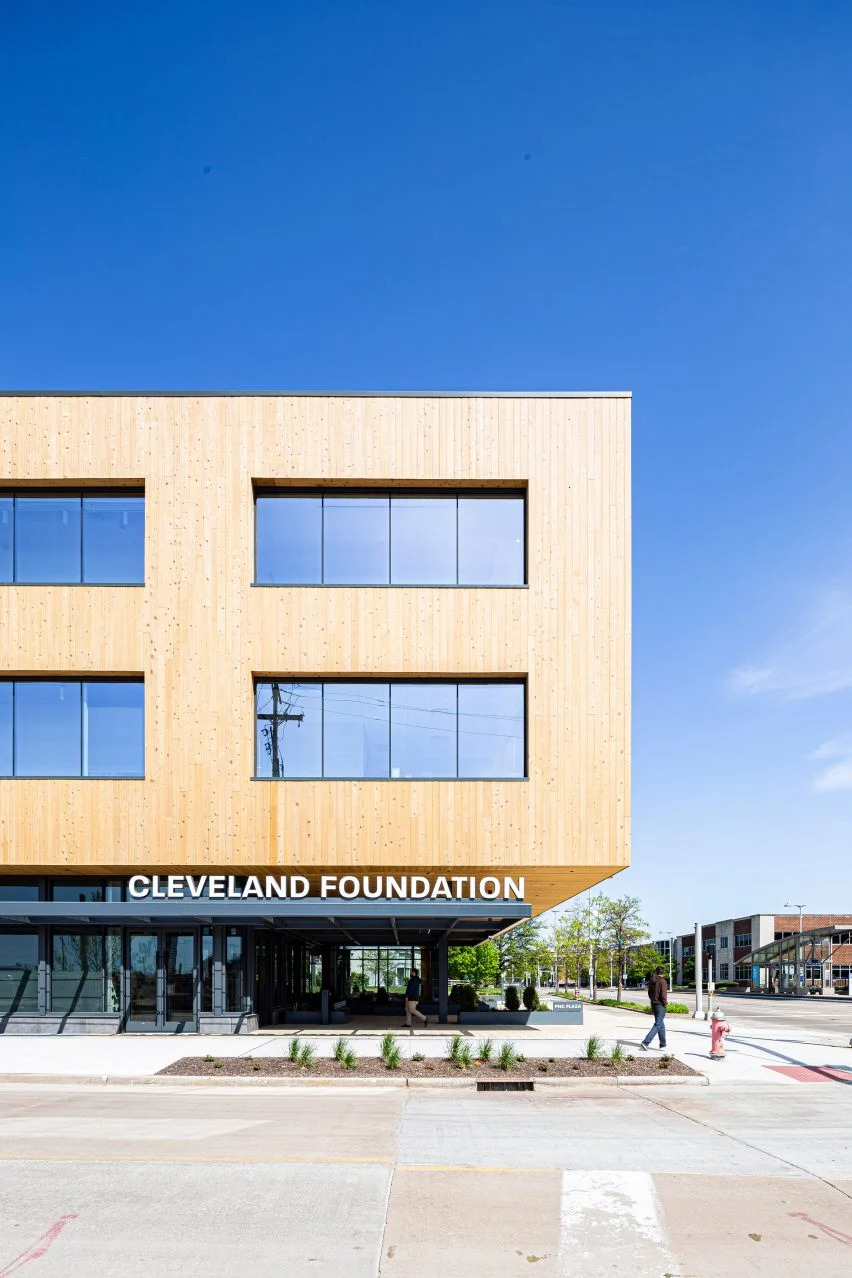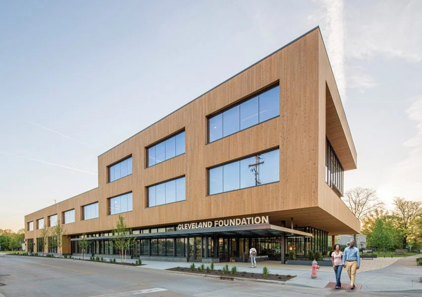 美国S9工作室(S9 Architecture)为克利夫兰基金会(The Cleveland Foundation)完成了一座建筑,其特点是温暖的雪松覆层、大窗户和由大块木材制成的柱梁结构系统。