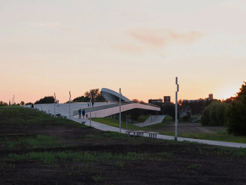 斯马建筑工作室在西班牙也有办事处,在赢得国际设计竞赛七年后,在倾斜的公园场地上完成了该中心的建造。