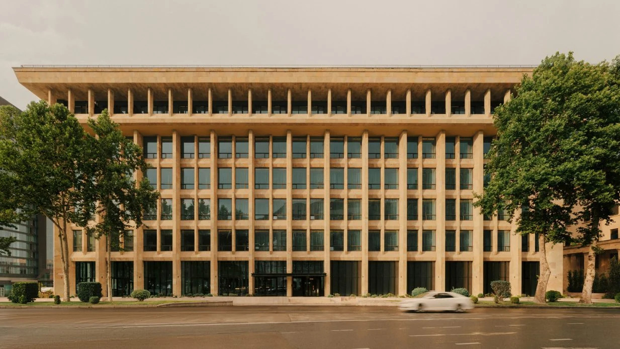 翻修后,胡郭锡恩和胡如珊保留了这栋建筑的前苏联现代主义立面,其纪念性檐口由当地的玻利西凝灰岩(Bolnisi)制成——同样的石头也曾沿着拉斯塔维利大道覆盖着格鲁吉亚议会。