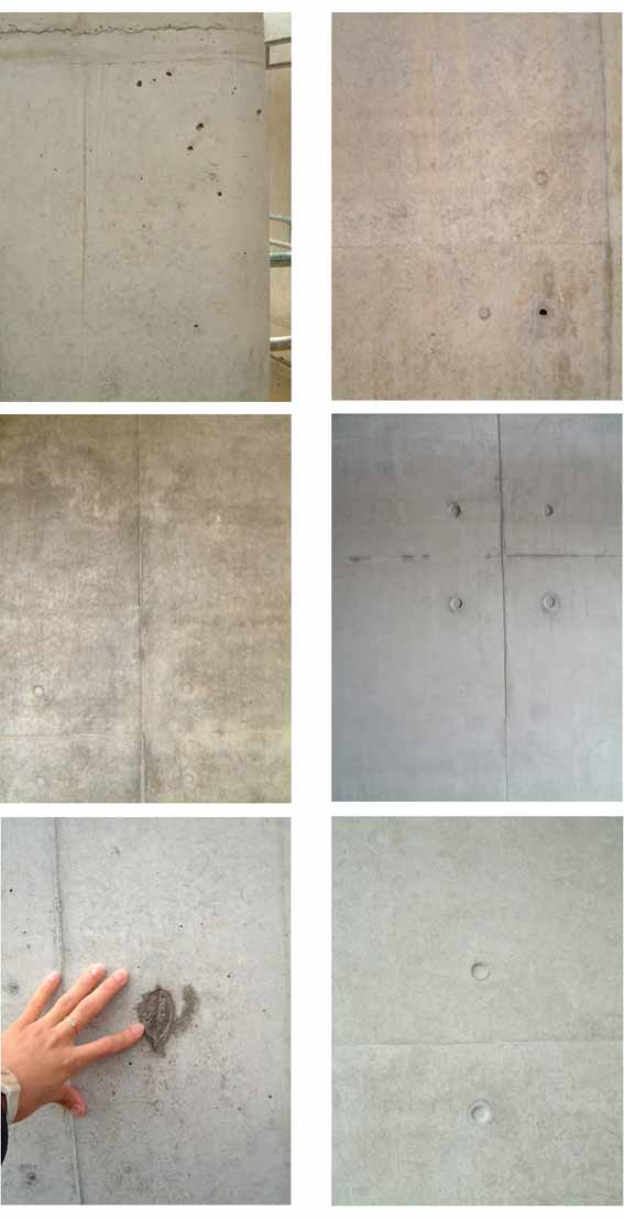 图16:由于施工造成的各种混凝土外观。左下图为安腾在Vitra会议中心的现浇混凝土,其余为议会大楼的现浇混凝土