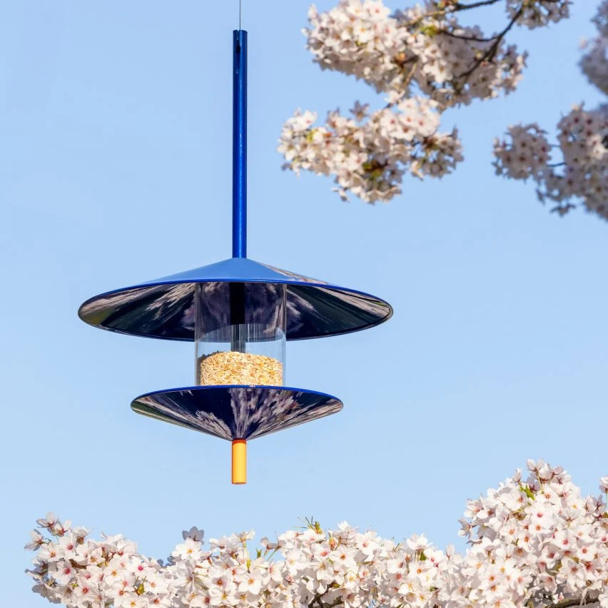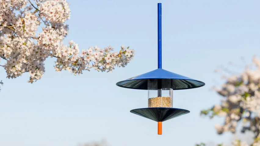 喂食器的颜色也很实用,工作室最初选择深蓝色,因为这是一种吸引鸟类的颜色。未来还计划推出深绿色和红色版本。