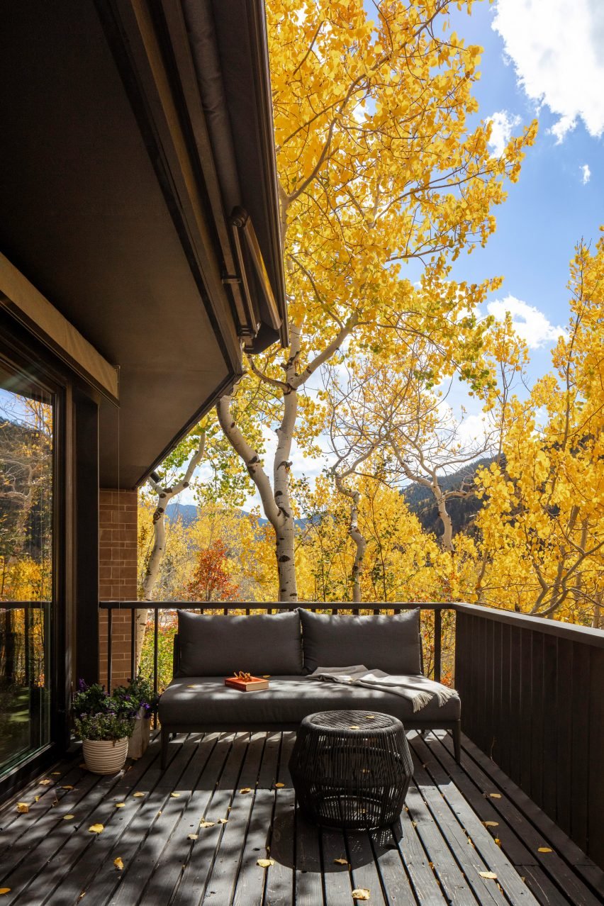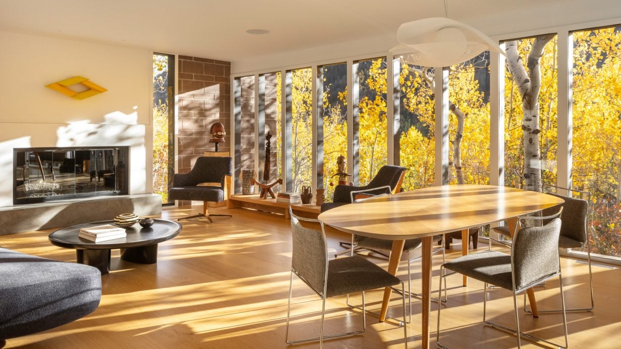 这座房子建于1968年,坐落在阿斯彭镇(Aspen)一个倾斜的高山上。这座房子被一排白杨树环绕,给人一种“栖息在树屋里的感觉”。