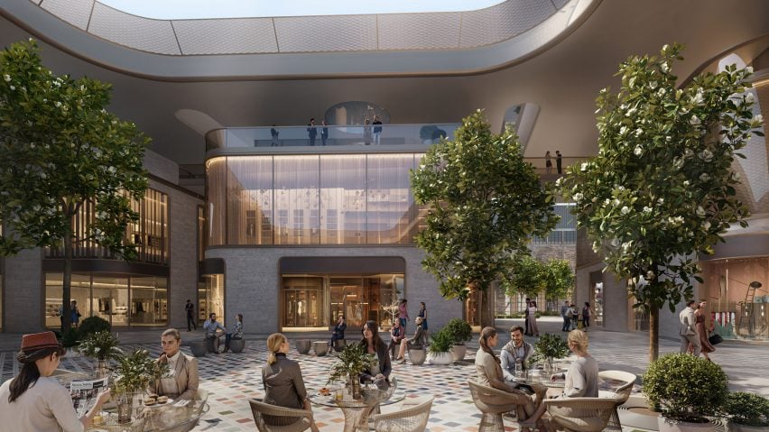 福斯特工作室将金角广场描述为“一个豪华零售广场”,它将容纳高端品牌,这些品牌分布在一个两层楼高、相互连接的建筑群中,店面和内部装修都可以调整。