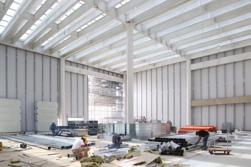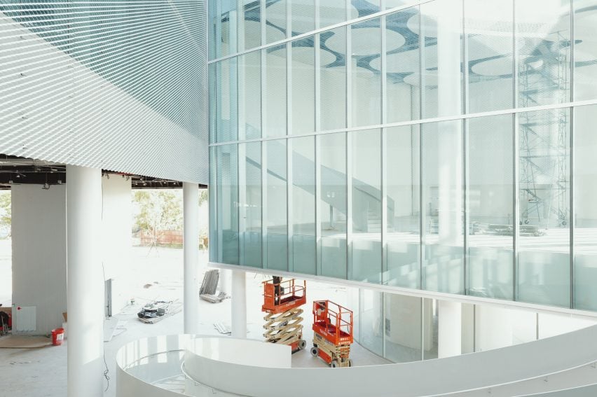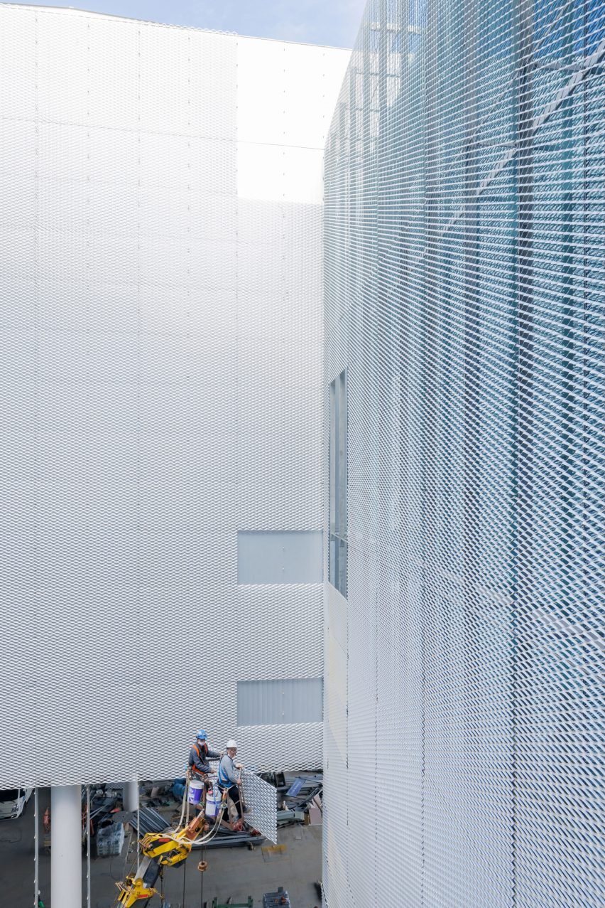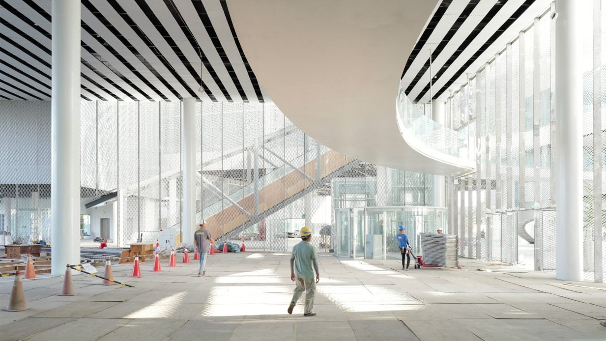 完成的台中绿色博物馆以透明和流动性为主题,将以玻璃和金属墙为特色,覆盖在白色金属网制成的幕墙中。